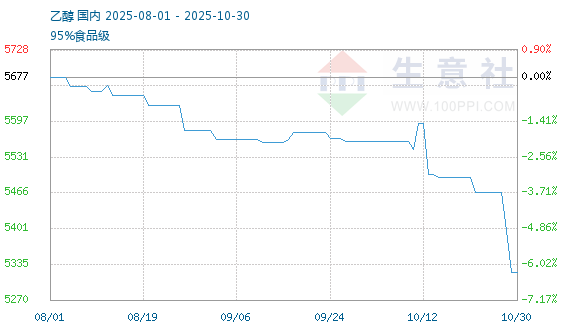 10月30日生意社乙醇基准价为5321.11元/吨